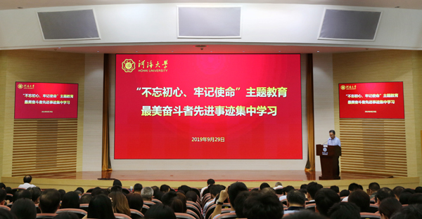 9月29日,为深化党员干部对“不忘初心、牢记使命”的认识和理解,响应中宣部等部委在全国城乡广泛开展“最美奋斗者”学习宣传活动的号召,我校举行“不忘初心、牢记使命”主题教育“最美奋斗者”先进事迹集中学习报告会。校领导、全体中层干部、师生党员代表参加报告会。校党委副书记、“不忘初心、牢记使命”主题教育领导小组副组长郭继超主持报告会。