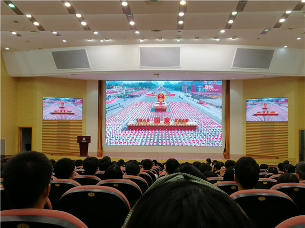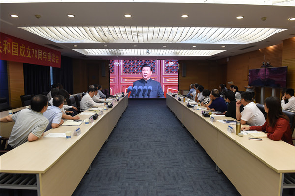 10月1日,河海大学师生通过电视、网络、广播等多种途径认真收看收听庆祝中华人民共和国成立70周年大会、阅兵式和群众游行,认真学习了习近平总书记重要讲话精神,并召开干部师生座谈会进行了座谈交流学习。大家纷纷表示,习近平总书记的重要讲话气势磅礴、催人奋进,阅兵式和群众游行令人鼓舞、令人振奋,我们要更加紧密地团结起来,不忘初心,牢记使命,继续把我们的人民共和国巩固好、发展好,继续为实现“两个一百年”奋斗目标、实现中华民族伟大复兴的中国梦而努力奋斗!