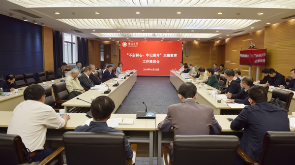 10月22日,河海大学举行不忘初心、牢记使命”主题教育党委中心组(扩大)专题学习、工作推进会,专题学习了新修订的《中国共产党问责条例》、《中国共产党宣传工作条例》等文件精神,通报了学校主题教育工作开展情况及下一阶段主要工作,能电院党委、地学院党委、外语院党委、机电院党委分别作主题教育阶段性工作交流。校党委书记唐洪武主持会议。