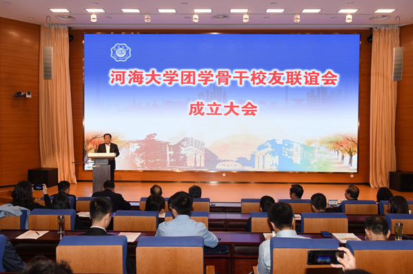 徐辉校长在致辞中对团学骨干校友联谊会的成立表示祝贺,并指出学校建校百余年来始终传承治水兴邦历史使命,坚持立德树人,为社会培养输送了近25万名校友。团学骨干校友们以各级组织为平台,主动融入学校事业发展大局,适应大学生成长需要,在奉献服务中,引领大学生成才,开展了大量扎实而富有成效的工作,彰显了河海人的青春活力与责任担当。希望第一届理事会将联谊会办好、办实、办出特色,不断创新活动载体、丰富活动形式,努力将联谊会建设成为密切联系校友与校友、校友与学校的纽带;将联谊会建设成为校友、学校、社会的发展共同体。