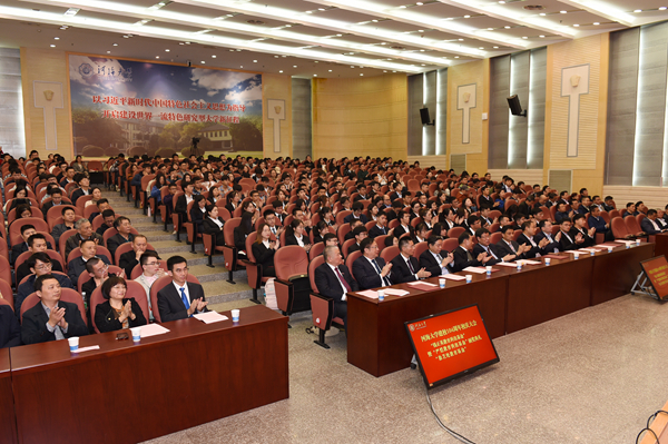 唐洪武书记在讲话中指出,学校深入学习贯彻习近平新时代中国特色社会主义思想和党的十九大精神,全面贯彻落实全国教育大会和全国高校思想政治工作会议精神,贯彻落实学校第十三次党代会的决策部署,凝心聚力推进“双一流”建设,在上级组织、社会各界、海内外校友的关心支持下,在全体师生员工的共同努力下,学校各项事业取得了可喜的成绩,为党和国家培养了一大批优秀人才,办学水平和办学层次显著提升,社会声誉和影响力持续扩大。他表示,立足新时代,面向新百年,学校将全面贯彻党的教育方针,坚持面向“四个服务”,坚持落实立德树人根本任务,坚持扎根中国大地办一流大学,加快构建和完善具有河海特色的高水平人才培养体系,致力培养担当民族复兴大任的时代新人,以新时代奋进之笔书写学校新百年发展的华丽篇章,为实现“两个一百年”奋斗目标和中华民族伟大复兴贡献河海力量。