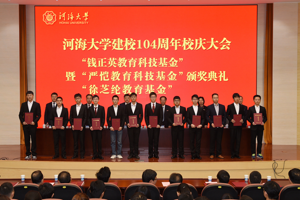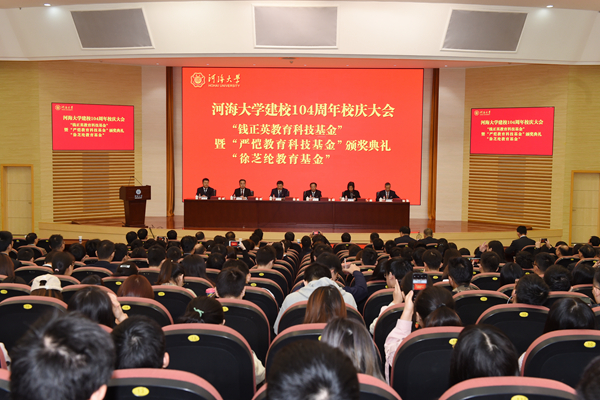 10月27日,我校举行建校104周年校庆大会暨“钱正英教育科技基金”“严恺教育科技基金”“徐芝纶教育基金”颁奖典礼。校党委书记唐洪武主持大会,校长徐辉作大会主题报告。校党委副书记郭继超,校党委副书记、纪委书记孟新,副校长许峰,副校长董增川出席大会。