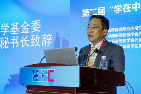 11月1日,第二届“学在中国”来华留学博士生论坛在南京国际博览中心举行。中国高等教育学会监事长孙维杰、中国高等教育学会外国留学生教育管理分会理事长刘京辉、国家留学基金委副秘书长王胜刚和江苏省教育厅副厅长洪流出席开幕式。开幕式由中国高等教育学会外国留学生教育管理分会副理事长兼秘书长李建民主持。