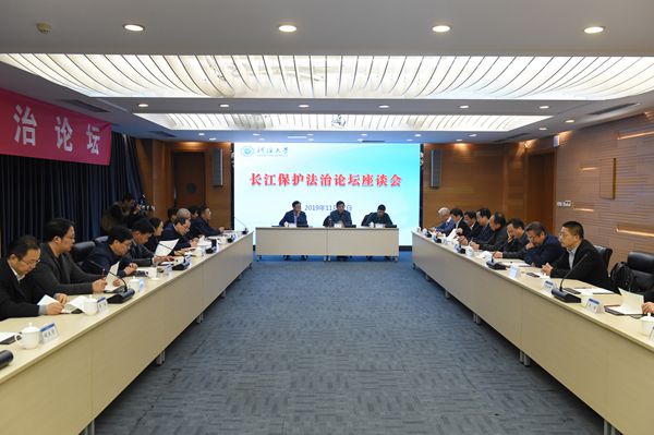11月27日,长江保护法治论坛座谈会暨圆桌会议在河海大学举行。长江保护与绿色发展研究院学术委员会主任委员、水利部原副部长矫勇,江苏省人民政府原副省长徐鸣出席论坛并发言。中国水利学会原常务副理事长、水利部办公厅原主任顾浩,水利部原总工程师汪洪,中国法学会环境资源法学研究会副会长周珂,南京水利科学研究院院长陈生水,南京水利科学研究院党委书记段虹,河海大学校长徐辉,河海大学副校长郑金海等领导出席座谈会。中国工程院院士、水利部南京水利科学研究院原院长、长江保护与绿色发展研究院院长张建云主持座谈会,河海大学党委书记、长江保护与绿色发展研究院执行院长唐洪武先后在座谈会和圆桌会议上致辞,河海大学总会计师、长江保护与绿色发展研究院副院长张兵主持圆桌会议第一单元。