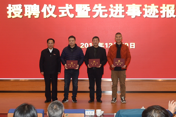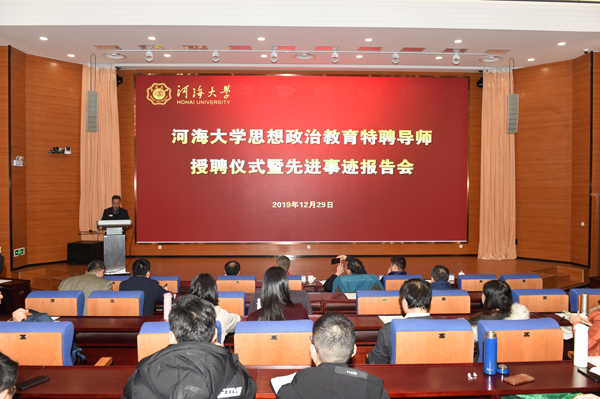 12月29日,河海大学举行思想政治教育特聘导师授聘仪式暨先进事迹报告会。全国劳动模范陈德风、唐晓源,全国五一劳动奖章获得者胡胜受聘为河海大学思想政治教育特聘导师,徐辉校长为他们颁发了聘书。校党委副书记郭继超主持活动。