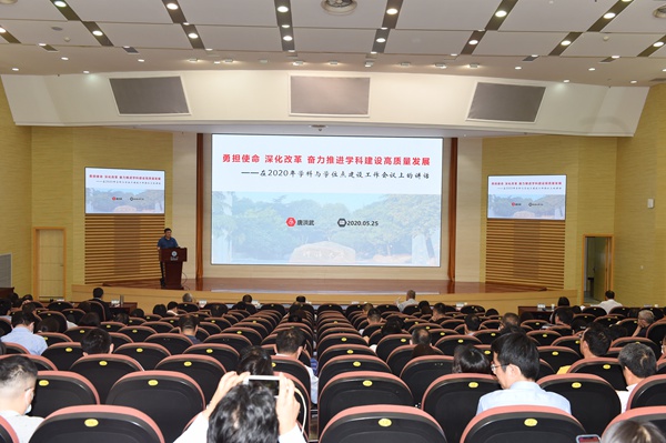 校党委书记唐洪武作《勇担使命 深化改革 奋力推进学科建设高质量发展》报告,他强调“双一流”建设、第五轮学科评估和学位点增设工作任务艰巨,使命光荣,意义重大。要秉持高度的政治责任感和历史使命感,树立必胜之心、责任之心,把初心落在行动上、把使命担在肩膀上,用脚踏实地、埋头苦干为学校事业进步做出应有贡献。他提出四点要求:一是以习近平新时代中国特色社会主义思想引领学科建设。二是以学科与队伍建设规划绘制学科发展蓝图。三是以深化改革激发学科建设活力。四是以担当作为落实学科建设目标任务。