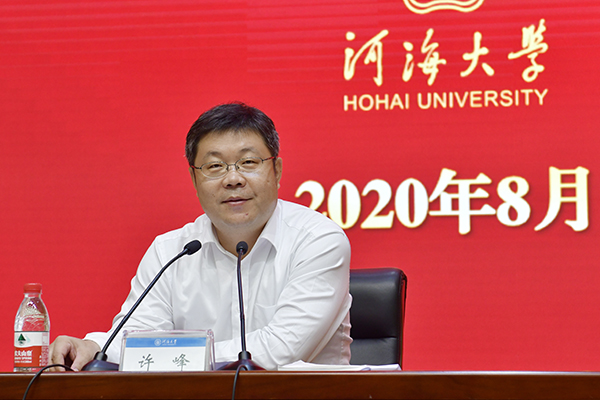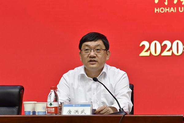 校长徐辉以“新时代教育工作者的使命与担当”为题作报告,他首先回顾了中国水利高等教育的发展历程和辉煌成就,指出进入新时代,高等教育要把握时代脉搏,全面贯彻党的教育方针,坚持中国特色社会主义教育发展道路,办好人民满意的教育,在此背景之下,河海大学必须凝心聚力、开拓奋进,加强党对学校工作的全面领导,坚持立德树人根本任务、推进治理能力现代化建设,瞄准建设目标,科学制定“十四五”发展规划,全面推进世界一流特色研究型大学建设。他强调,作为新时期的河海大学中层干部,要做好认知河海、热爱河海、服务河海三件事,积极践行新时代教育工作者的初心与使命。