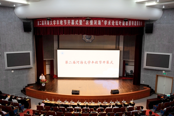 9月20日上午,河海大学举行第二届河海大学丰收节开幕式暨“农情河海”学术论坛特邀报告会。河海大学校长徐辉、江苏省水利厅一级巡视员叶健、江苏中苏科技股份有限公司副总裁颜爱忠、农业科学与工程学院师生以及学校相关职能部门负责人出席了本次活动。开幕式由农业科学与工程学院院长陈菁主持。