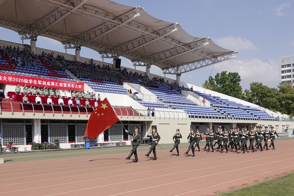 2020级学生军训旅全体成员,军训教官,各学院领导,2020级本科生辅导员参加了大会。(文/王婧 图/孟凯)
