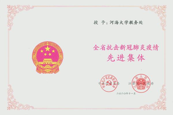 11月26日,江苏省全省抗击新冠肺炎疫情表彰大会在南京隆重举行,会上对受到省委、省政府表彰的先进个人和先进集体进行了颁奖。河海大学教务处荣获“全省抗击新冠肺炎疫情先进集体”称号,全省共表彰先进集体300个,其中高校二级单位4个。