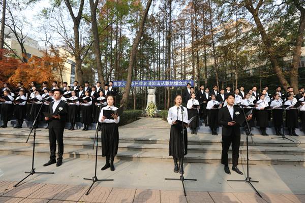 1937年12月13日,侵华日军野蛮侵入南京,制造了绝灭人性的南京大屠杀惨案,30万同胞惨遭杀戮,数以千计无辜同胞在清凉山附近之原吴家巷、韩家桥等地遇难。为纪念死者,激励后人,振兴中华,维护和平,1985年河海大学师生在校园内设计建造了“侵华日军南京大屠杀清凉山遇难同胞纪念碑”,2006年5月25日被国务院确定为全国重点文物保护单位。纪念碑高三米,基座采用三层红色台阶,象征三十万人血撒江山,碑身三面为人字造型,象征三十万中华儿女屹立大地,分别用中、英、日文刻碑名,碑顶为三足鼎,正面镶“居安思危”,背面铭刻碑文,以寄托哀思。每年的12月13日河海师生都在这里举行活动,纪念逝者,学习历史,警示当今。(文/李婉婷 图/朱昊、孟凯)