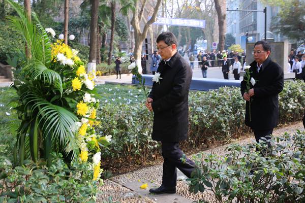 12月13日,第七个南京大屠杀死难者国家公祭日,防空警报再次在南京拉响。铭记历史、珍爱和平、追思同胞,是一种历史责任,也是一种前行力量。上午十时,河海大学师生代表在校内南京大屠杀死难者清凉山丛葬地“侵华日军南京大屠杀清凉山遇难同胞纪念碑”前,沉痛悼念和缅怀逝去的同胞。校领导及师生代表参加了悼念活动。校党委副书记郭继超主持悼念活动。