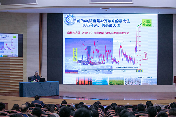 丁院士在报告中阐述了全球气候变化的科学与前沿问题,包括驱动力、变化特点、影响,以及我们该如何适应气候变化和在科学研究方面的发展方向等内容。他指出,近50年的全球变暖主要是由人类活动造成,导致了暴雨、高温热浪、海平面上升、冰川融化、极地海冰的融化等重大问题。为适应气候变化,我们需做好气候风险评估工作;建立应对气候变化的预警系统,减少与避免可能发生的气候变化灾害和全球性灾难;为更好的预报预估地球气候的未来变化和情景,大力发展无缝隙气候与气候变化预测系统。