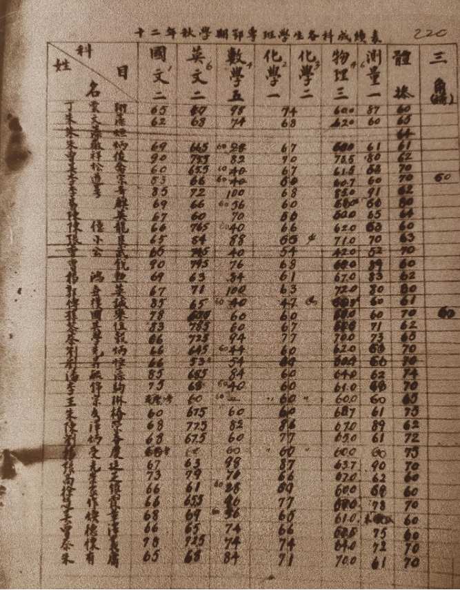 鄂专班各科成绩(图片来源:南京大学档案馆复印件)