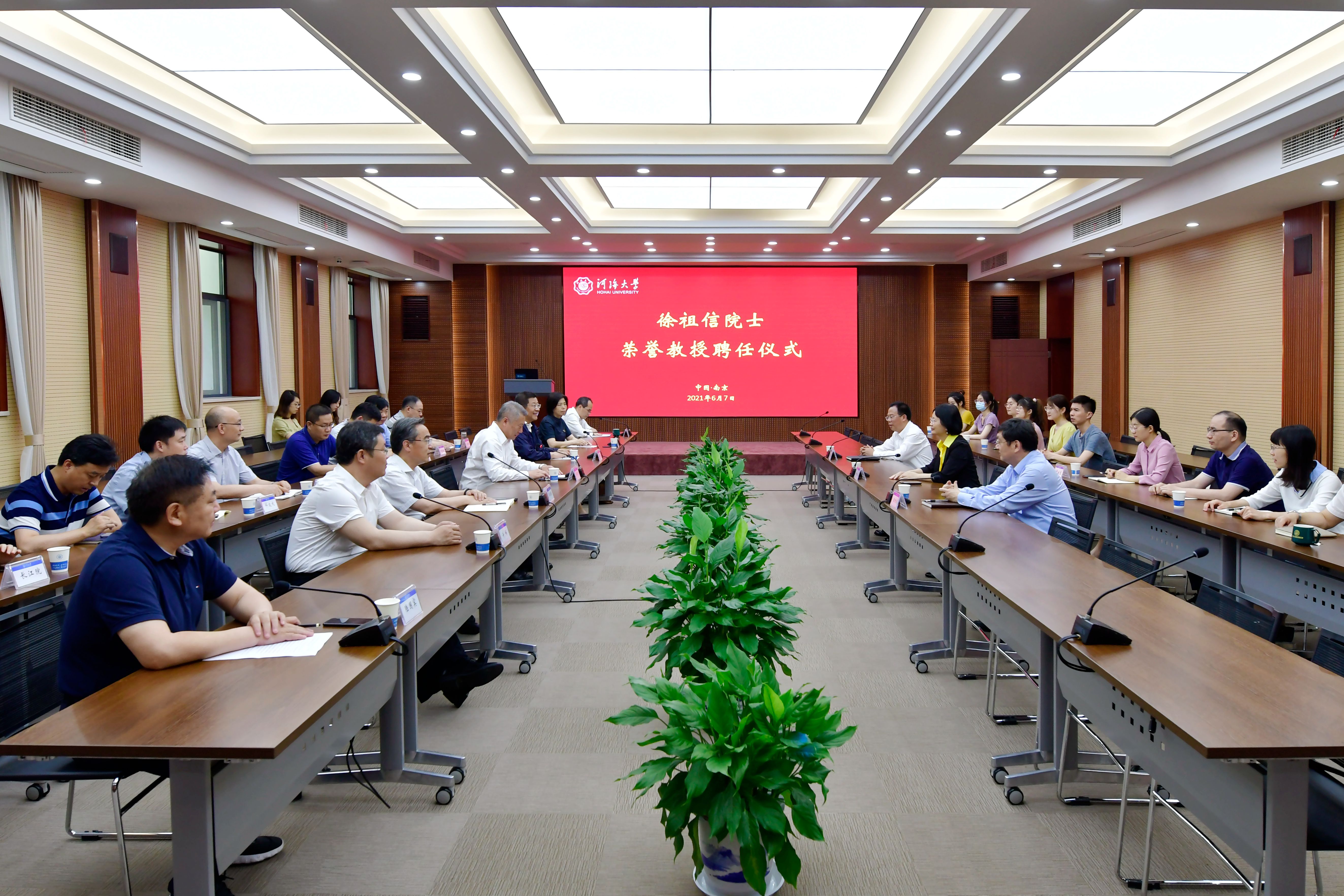 6月7日,我校举行中国工程院院士徐祖信荣誉教授受聘仪式。校党委书记唐洪武出席仪式并讲话,校长徐辉为徐祖信教授颁发聘任证书,常务副校长李俊杰主持聘任仪式。