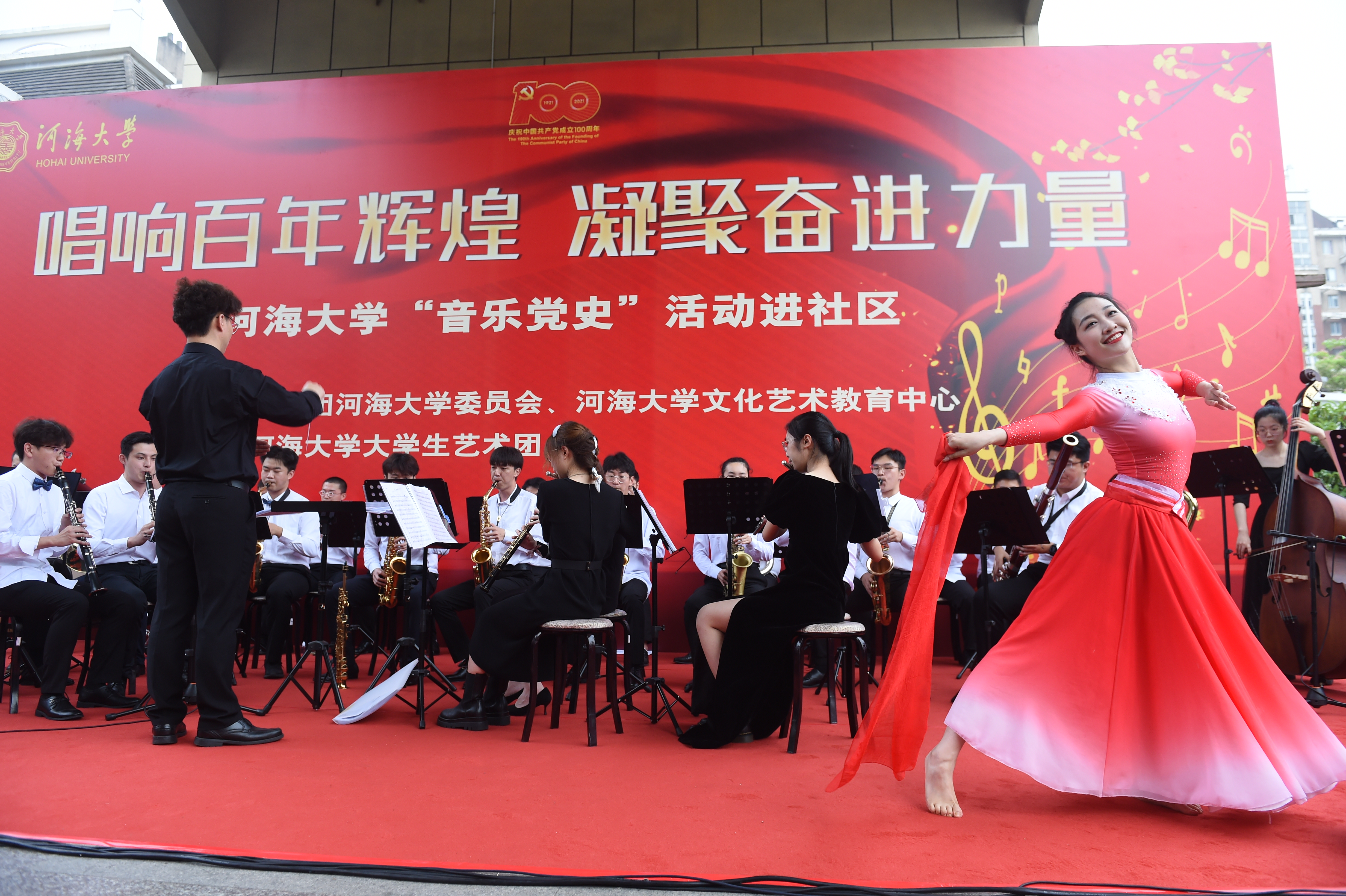 在庆祝中国共产党成立100周年之际,河海大学积极响应教育部开展“音乐党史”系列活动的号召,将音乐艺术与党史学习教育有机融合,打造行走的音乐党史舞台。通过“音乐党史”教育进学校、进社区、进群众,深入开展“我为群众办实事”,打通文化惠民的“最后一公里”,为社区居民带来一场听觉盛宴,让人民群众在党史学习和音乐美的体验中引发“永远跟党走”的心灵共鸣、思想共振,用艺术的感染力和影响力凝聚奋进新征程的磅礴力量,推动党史学习教育进一步入脑入心、走深走实。