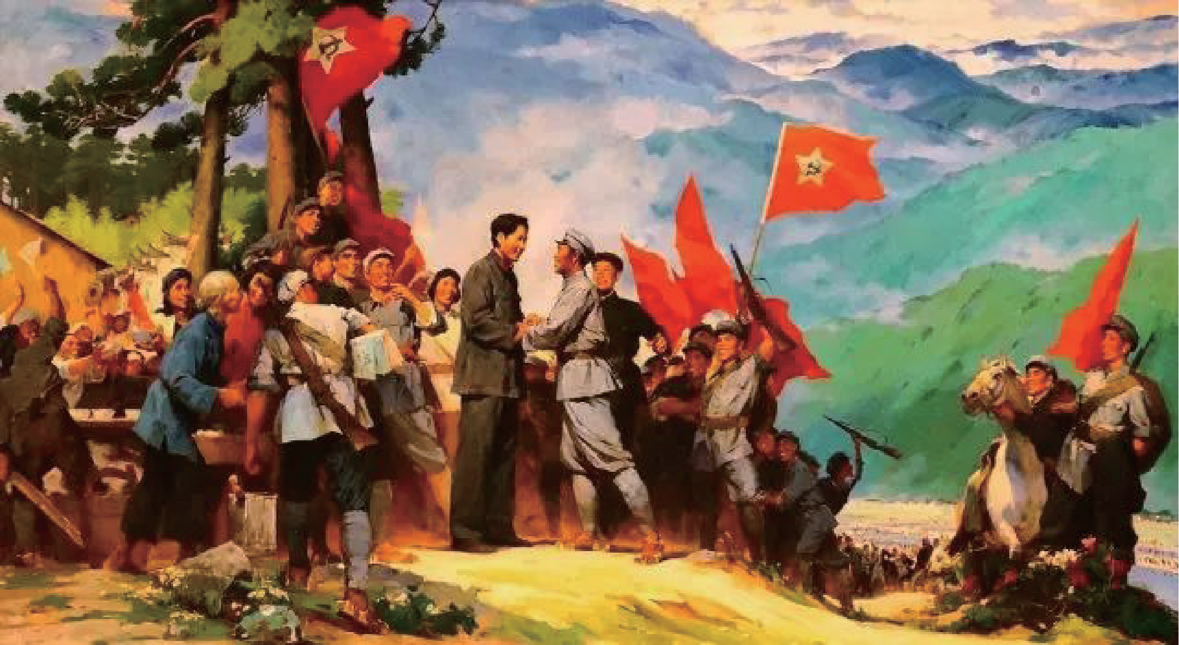 1928年4月,朱德、陈毅率南昌起义余部和湘南起义农军1万余人陆续转移到井冈山地区,同毛泽东领导的秋收起义部队在井冈山胜利会师。