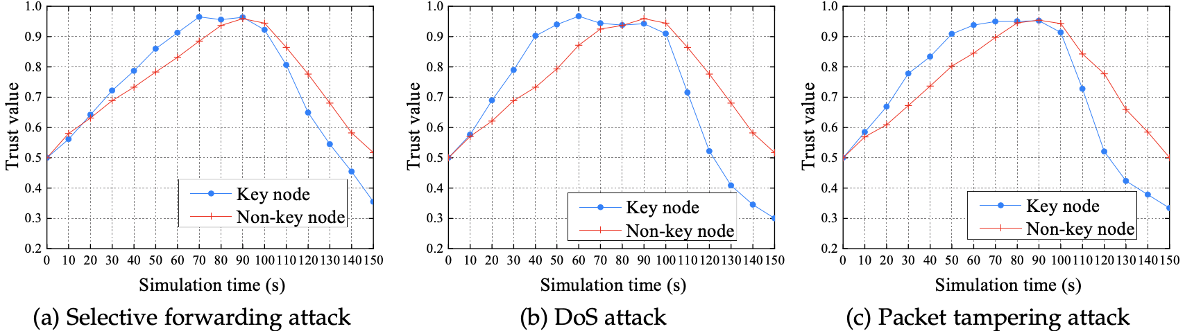 在提升信任更新效率与灵活性方面,韩光洁团队提出一种基于强化学习的信任更新机制。建立了环境模型来量化水下环境扰动对传感器数据的影响,通过定义节点关键度来提升重要网络节点的抗攻击能力,并采用强化学习算法进行高效地信任更新。实验证明该模型在不确定环境下具有更加健壮的信任更新能力。