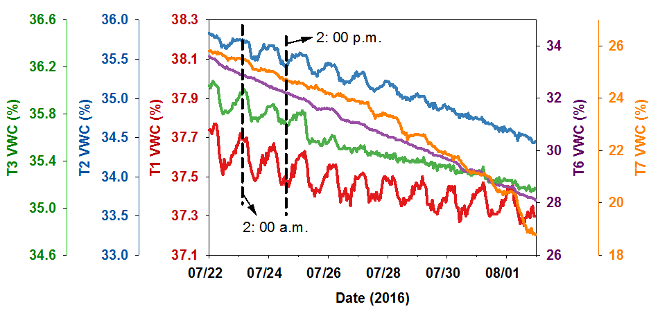图1. 土壤含水量“阻尼震荡”式下降规律示意图