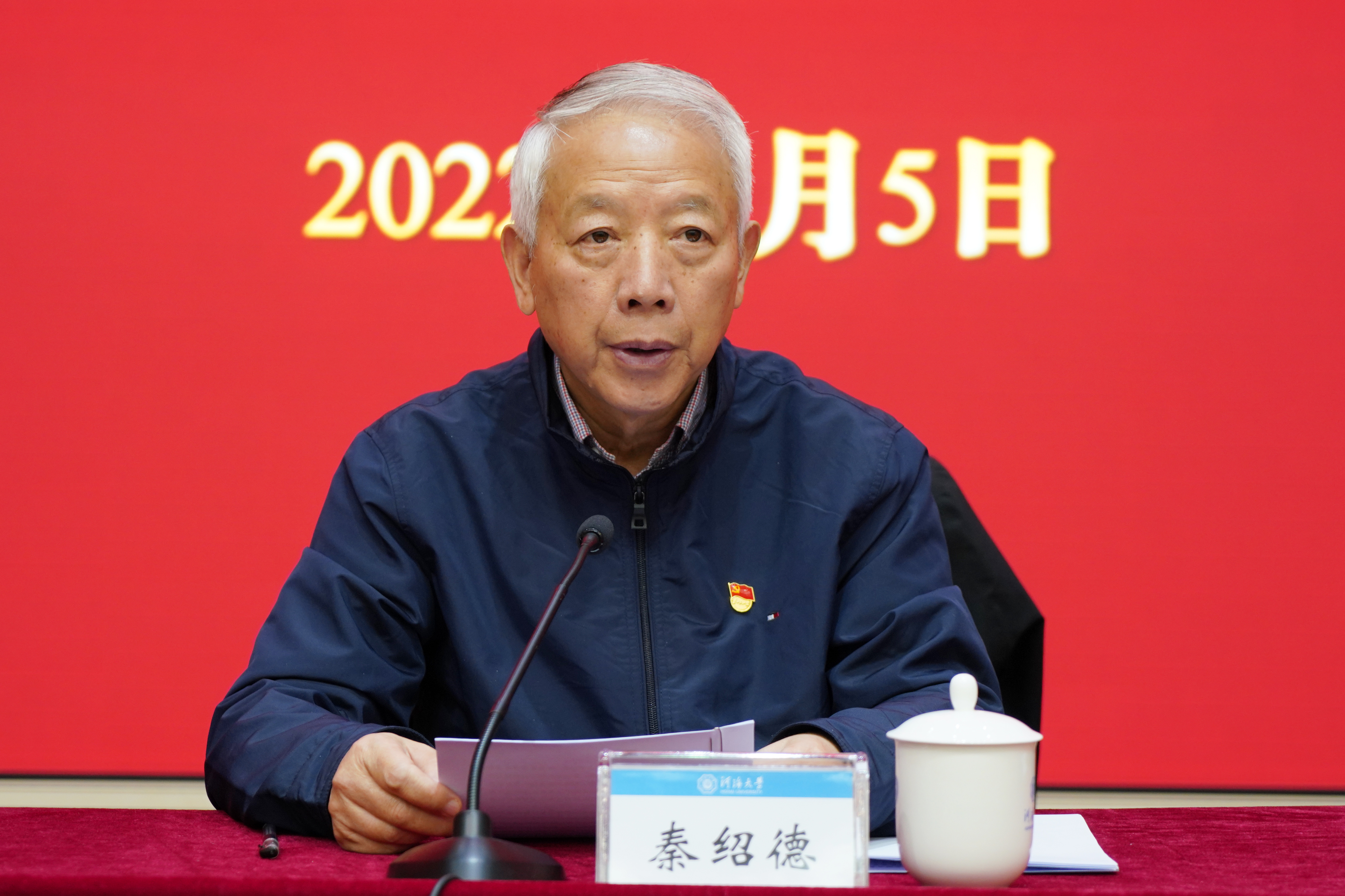 秦绍德在讲话中充分肯定河海大学开展党史学习教育的做法和成效。他指出,河海大学按照“学史明理、学史增信、学史崇德、学史力行”的要求,发挥行业特色、挖掘红色资源,精心组织实施、从严从实推进,高标准高质量完成各项任务,党史学习教育成效显著。他希望,学校要大力弘扬伟大建党精神,持续深入学习贯彻党的十九届六中全会精神,持续学深悟透党的创新理论,建立常态化、长效化机制,不断巩固拓展党史学习教育成果,团结带领全校师生走好新的赶考之路。