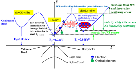图3.3 声子瓶颈效应及谷间散射对载流子弛豫过程影响的关系梳理及模型解释