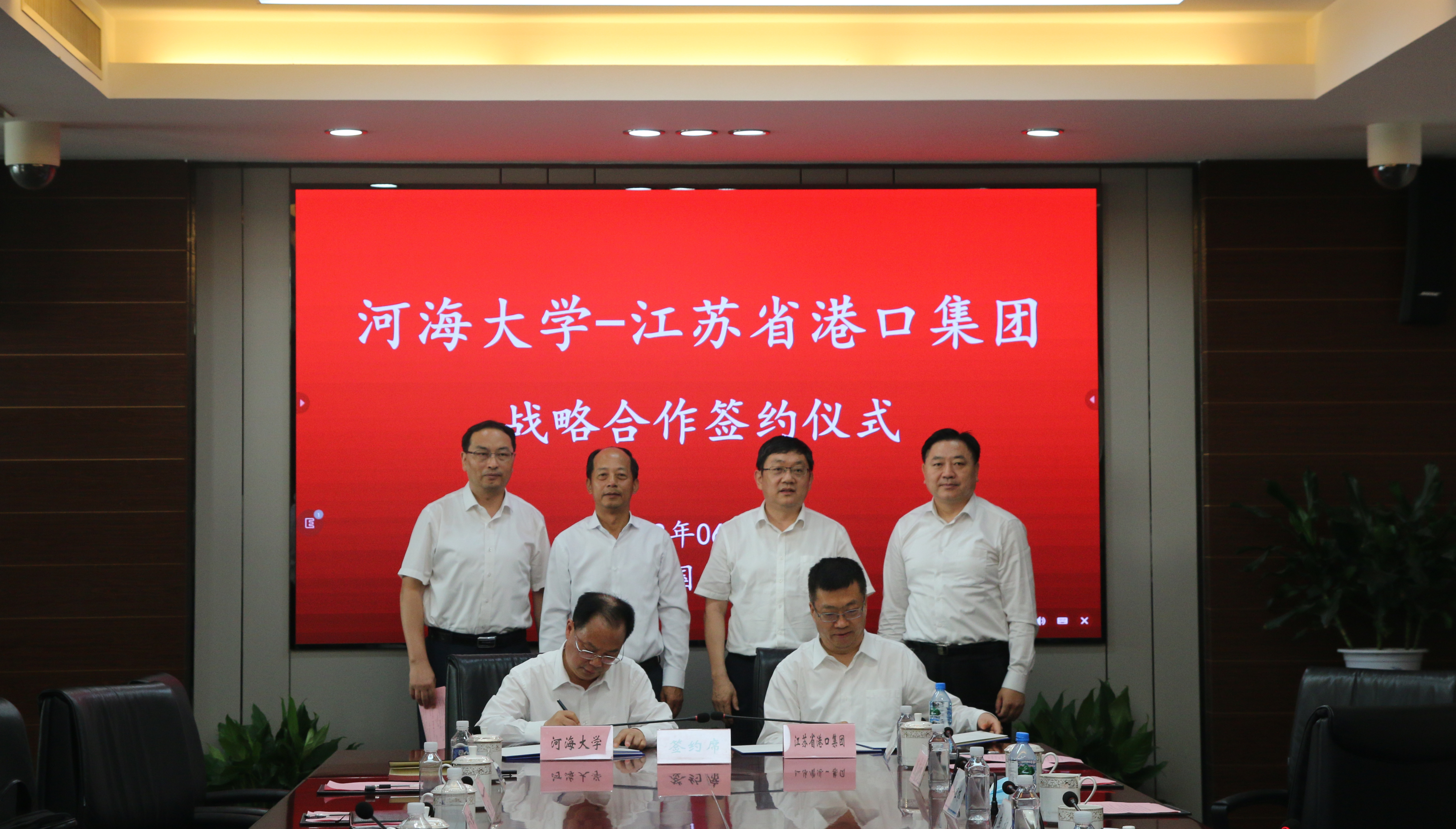 6月13日,河海大学与江苏省港口集团战略合作签约仪式在南京港龙潭集装箱有限公司举行。河海大学党委书记唐洪武,江苏省港口集团董事长、党委书记王永安出席签约仪式并致辞。河海大学校长徐辉和江苏省港口集团总经理、党委副书记关永健代表双方签署战略合作协议。河海大学副校长陆国宾、江苏港口集团副总经理谭瑞兵出席签约仪式。