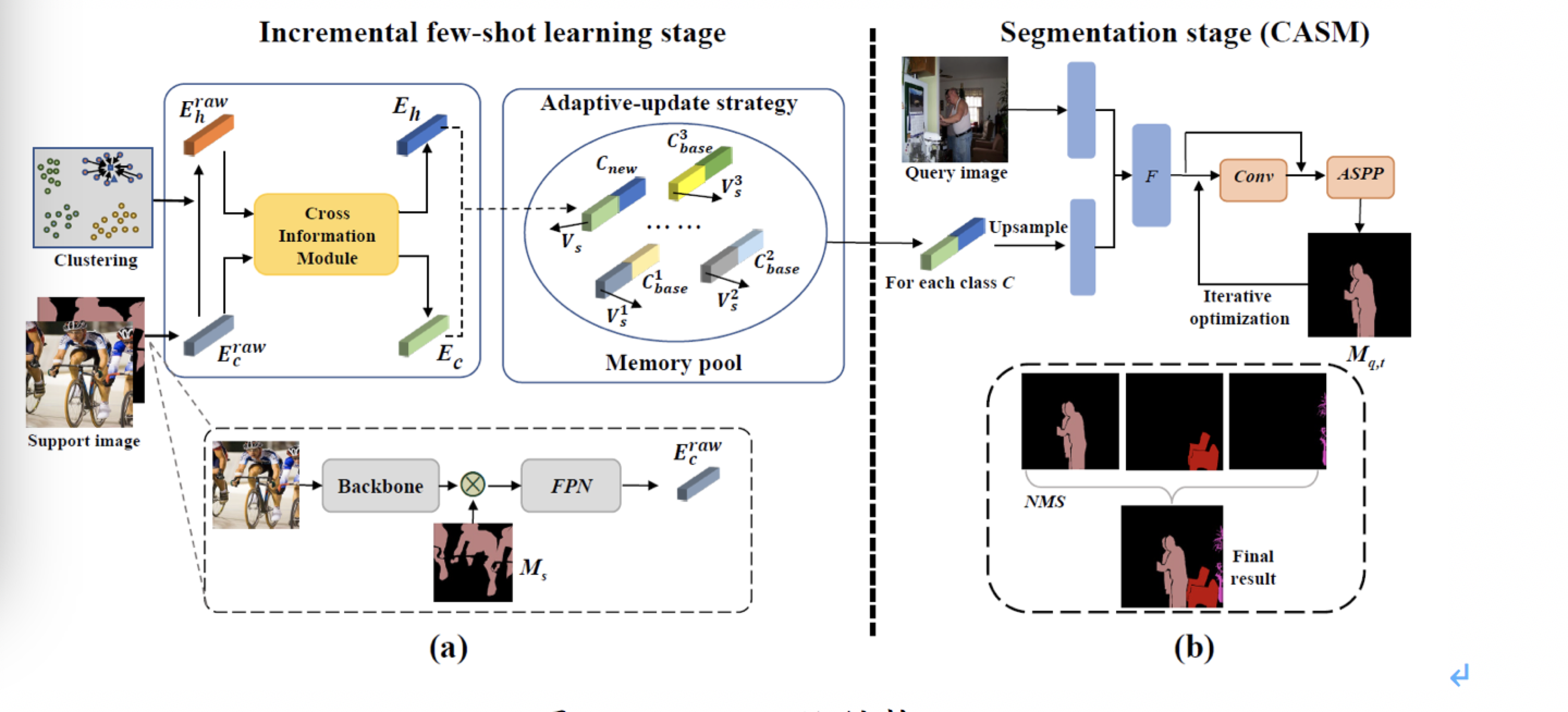 该论文聚焦增量小样本条件下的图像语义分割问题,通过增量地学习不同类别的语义知识,在获得对新类图像像素级分割能力的同时,保持对旧类的分割能力。论文分析了在增量小样本学习模型中,易出现的旧类遗忘和新类过拟合问题。为此,论文提出了一种基于嵌入表示自适应更新和超类表示策略的深度神经网络模型(EHNet),前项策略用于避免旧类的特征漂移,解决旧类遗忘问题,后者基于已学习类别的语义知识,为新类别的超类嵌入表示提供构建指导,减轻对训练数据规模的依赖。与最优方法(PIFS)相比,EHNet在基准测试数据集上获得5.9个百分点的性能提升,是增量小样本图像语义分割的当前最佳方法。