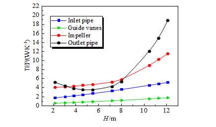 图1 考虑叶顶间隙的水泵反向发电在不同工况下不同过流部件的能量损失对比