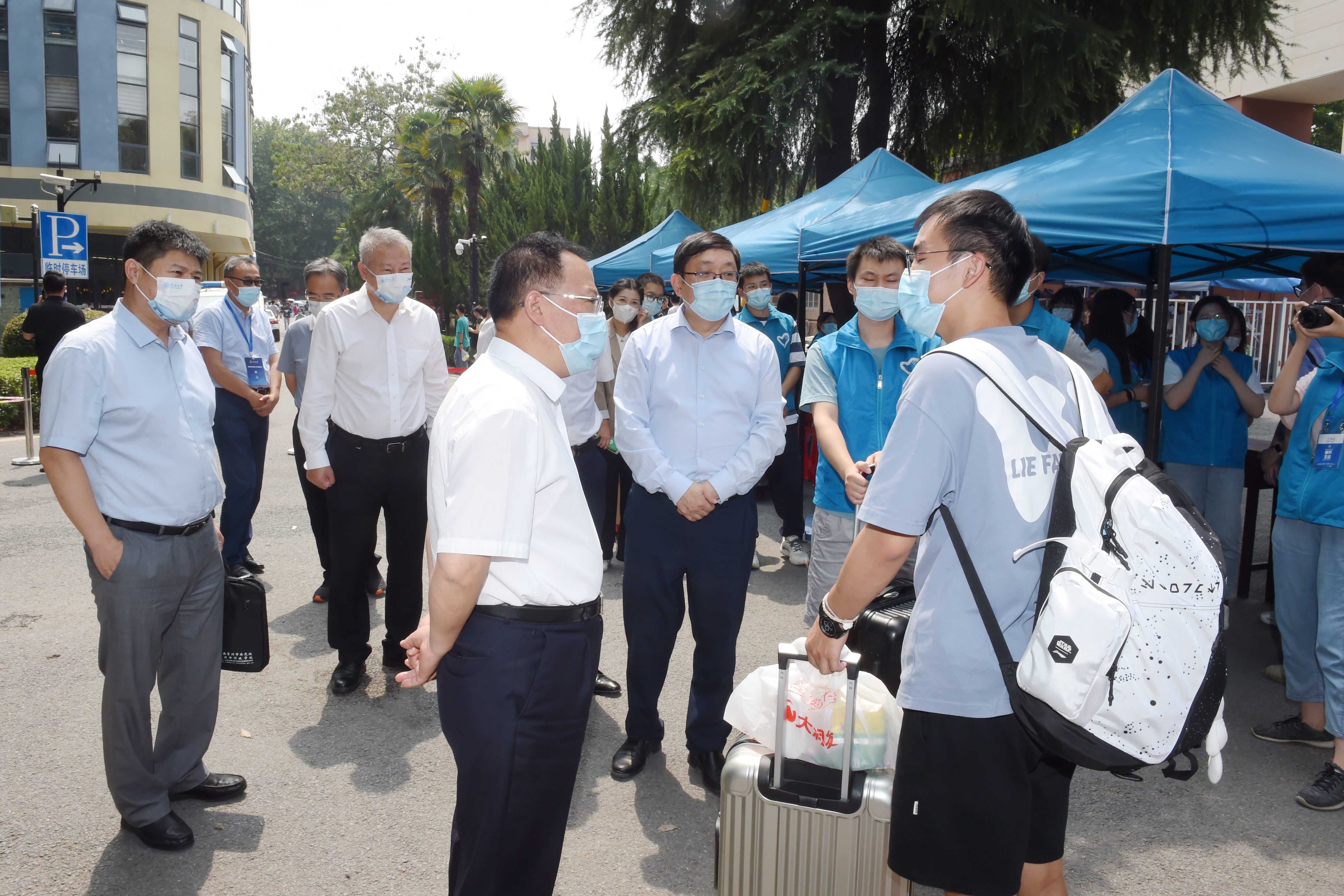9月1日,河海大学2022级研究生新生报到入学。校党委书记唐洪武,校长徐辉等校领导以及相关部门负责同志到校大门志愿者服务点、各院(系)新生注册点看望研究生新同学。