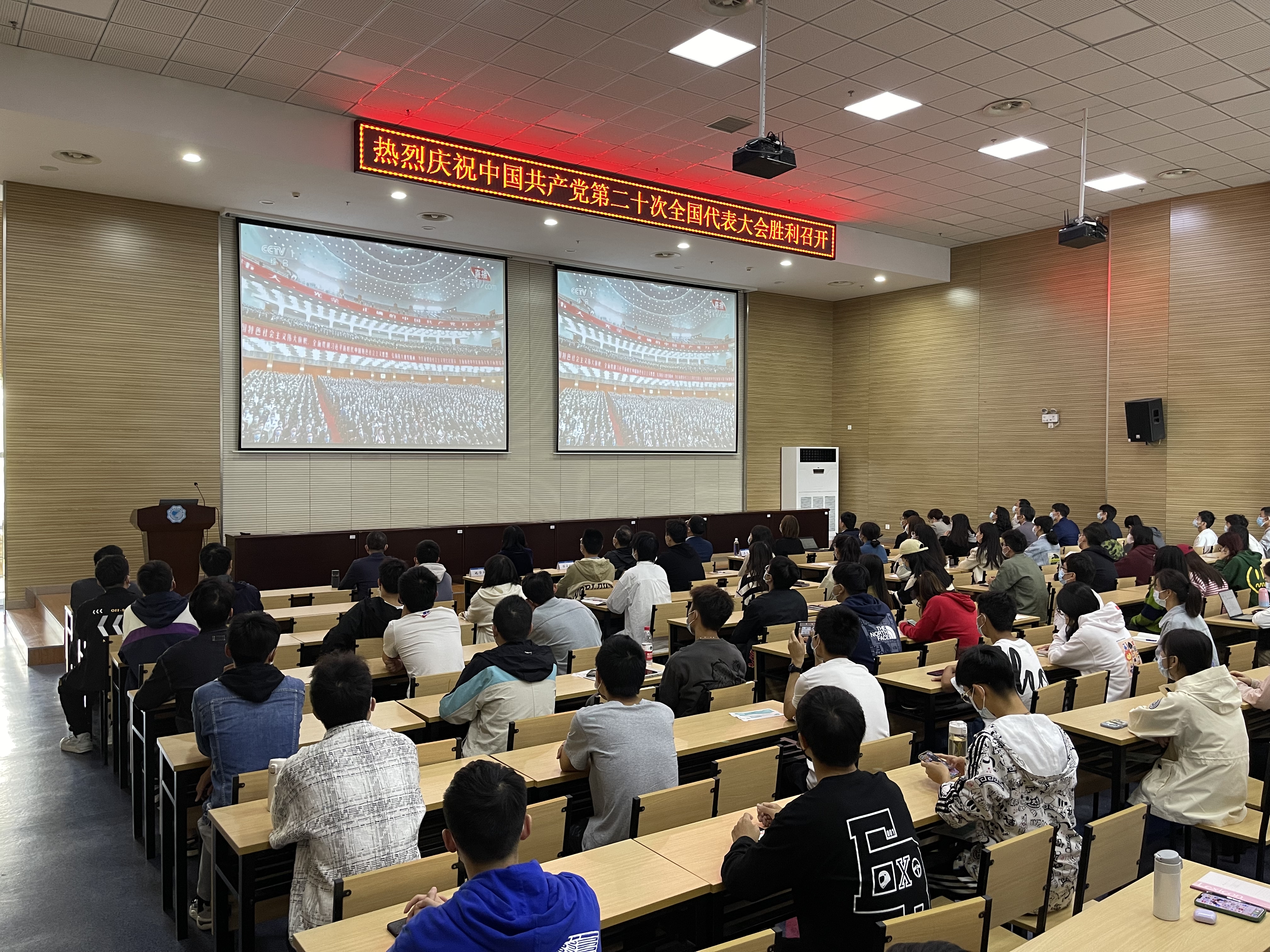 全体校领导,党委常委,校长助理,中层干部,师生代表在三个校区集中收看了中国共产党第二十次全国代表大会开幕会直播,认真聆听了习近平总书记在大会上的报告。同时,学校各级党组织也积极组织师生通过网络、电视等集体观看收听了大会盛况。