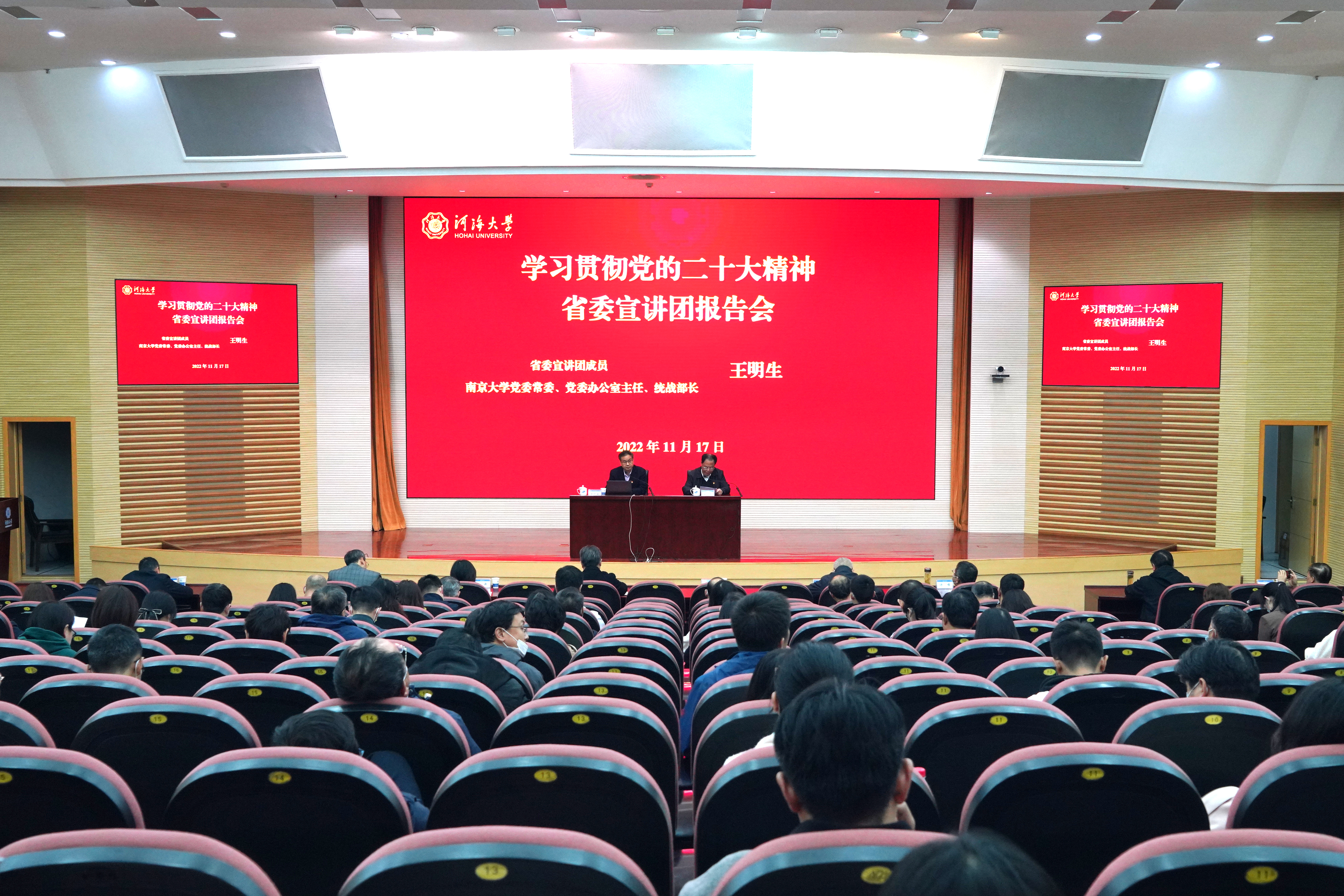 徐辉在总结讲话中指出,王明生教授的宣讲报告内容丰富、重点突出,为全校师生深刻理解、准确把握党的二十大精神提供了权威辅导。全校上下要把学习贯彻党的二十大精神作为当前和今后一个时期的重大政治任务,要以此次宣讲为契机,持续拓展深度、延伸广度,更好地用党的二十大精神统一思想、统一意志、统一行动,全力推动学校事业发展实现新跨越,努力为保障国家水安全、引领水科学发展、服务“强富美高”新江苏现代化建设,以中国式现代化推进中华民族伟大复兴贡献河海智慧与力量!(文/乔洁琼 图/朱昊)
