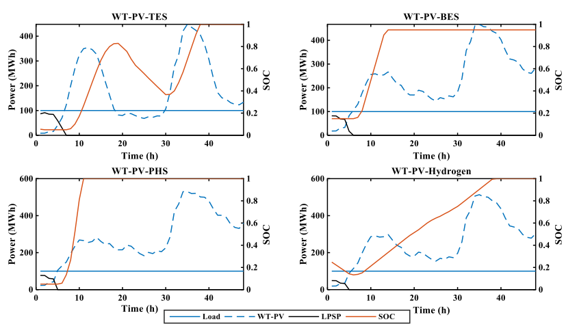 图1 含不同储能技术的可再生能源多能互补发电系统仿真运行