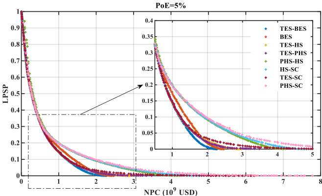 图2 含不同联合储能的可再生能源多能互补发电系统技术经济性比较