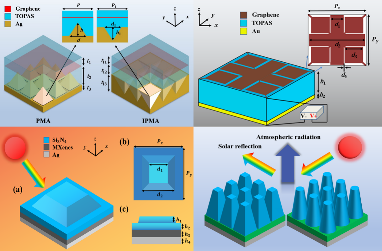 近年来,相关成果发表在《Materials & Design》《Journal of Materials Chemistry C》以及《Solar Energy Materials and Solar Cells》等材料学、光学权威期刊上。论文第一作者为理学院硕士研究生丁志鹏,指导老师为姚红兵教授和苏巍副教授。该研究受到国家自然科学基金等经费资助,有望推动与电磁波的吸收、反射和透射传播相关的复杂系统设计的进一步发展。