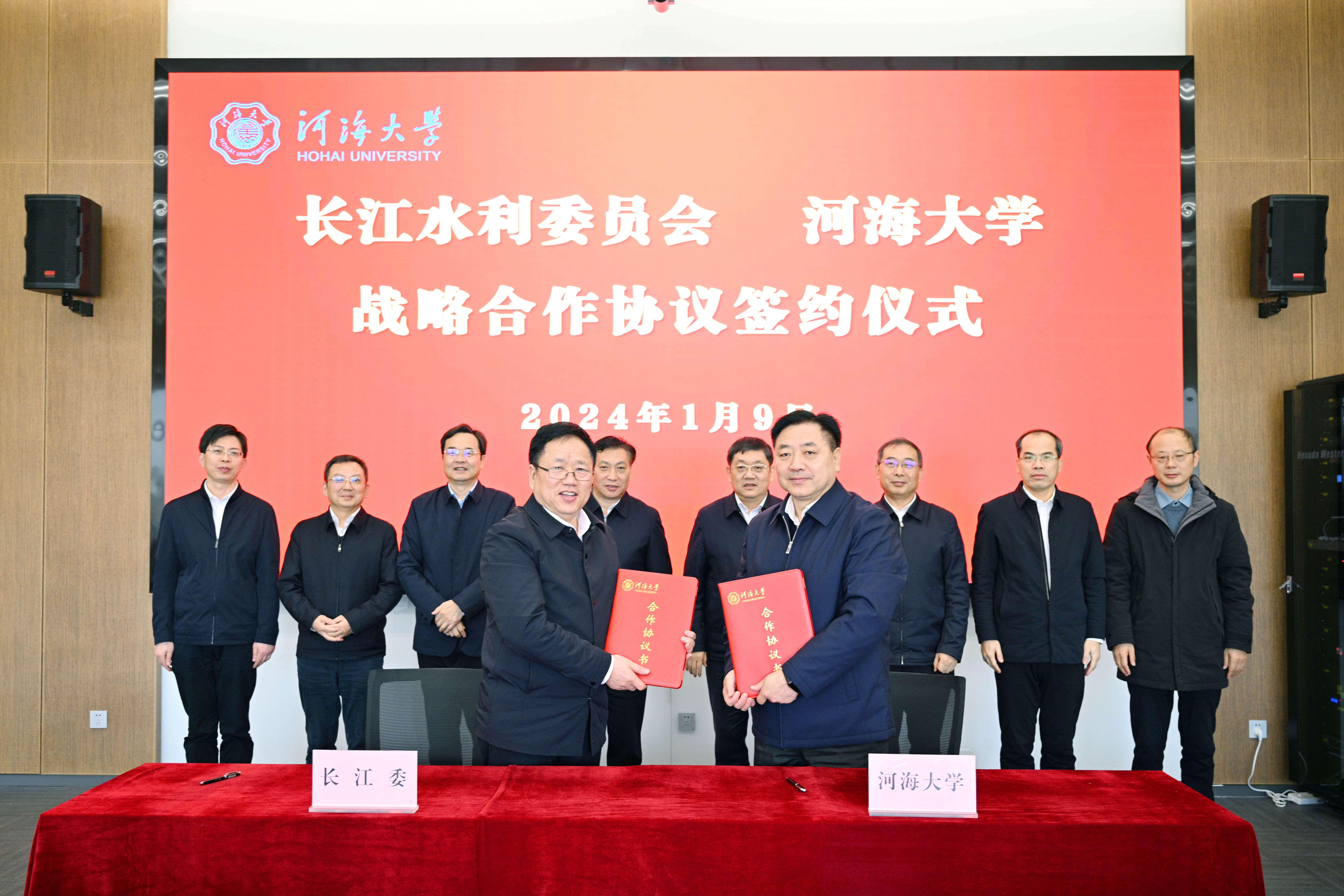 1月9日,水利部长江水利委员会党组书记、主任刘冬顺一行来校开展合作交流并签署战略合作协议。河海大学党委书记唐洪武院士出席会议并讲话,校长杨桂山主持了会议。长江委副主任吴道喜、长江委水文局局长程海云、长江科学院院长许全喜、长江设计集团总经理胡向阳、长江委办公室副主任胡早萍、长江委国科局局长罗小勇、长江委规计局副局长宁磊、长江委人事局副局长谭杰,河海大学副校长郑金海、副校长陆国宾出席会议。