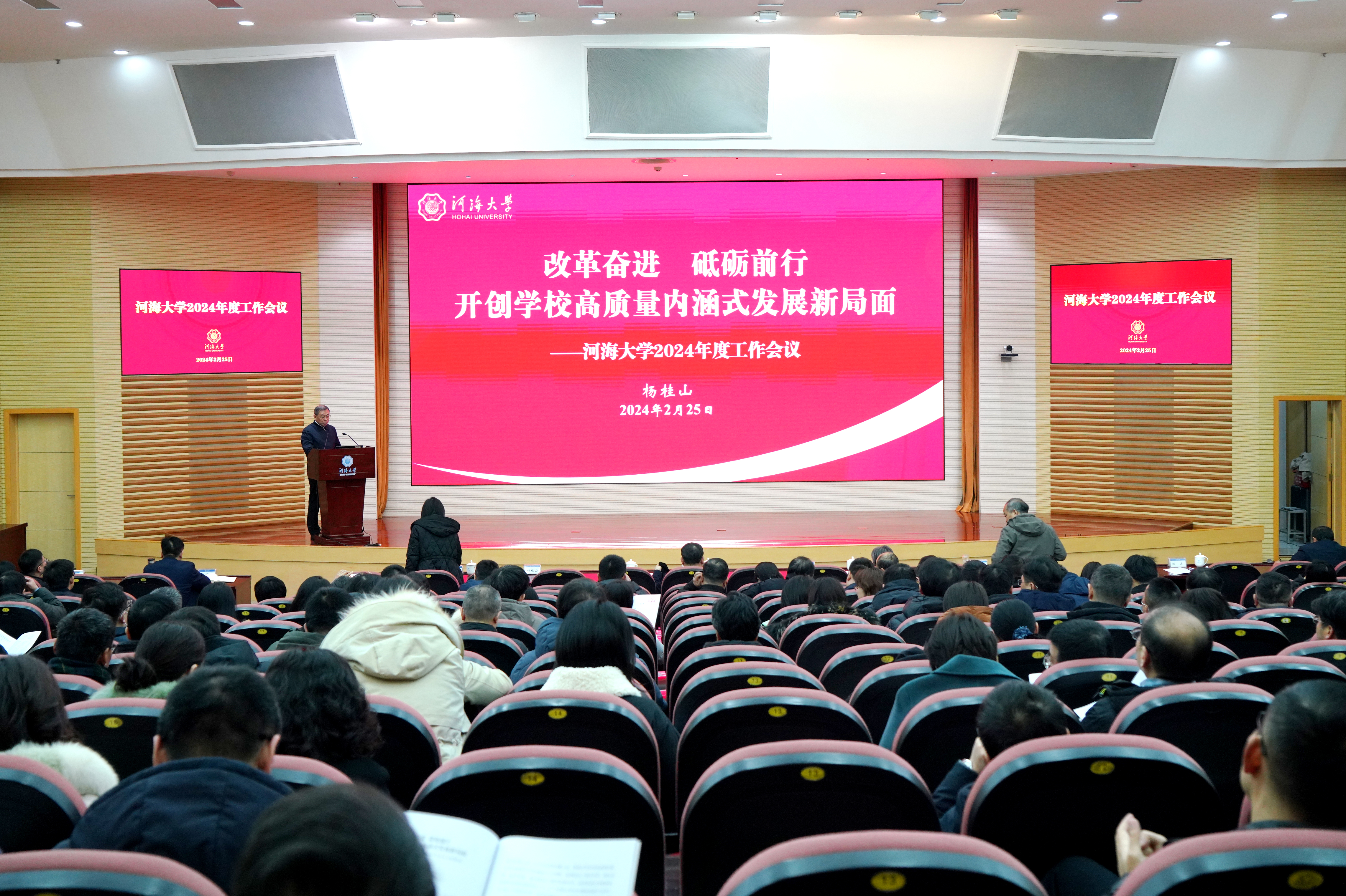 225日,河海大学召开2024年度工作会议。全体校领导,院士,校党委委员、纪委委员,全体中层干部及有关单位负责人,党外人士代表,二、三级教授代表,人才计划入选者代表在主会场参加了会议。