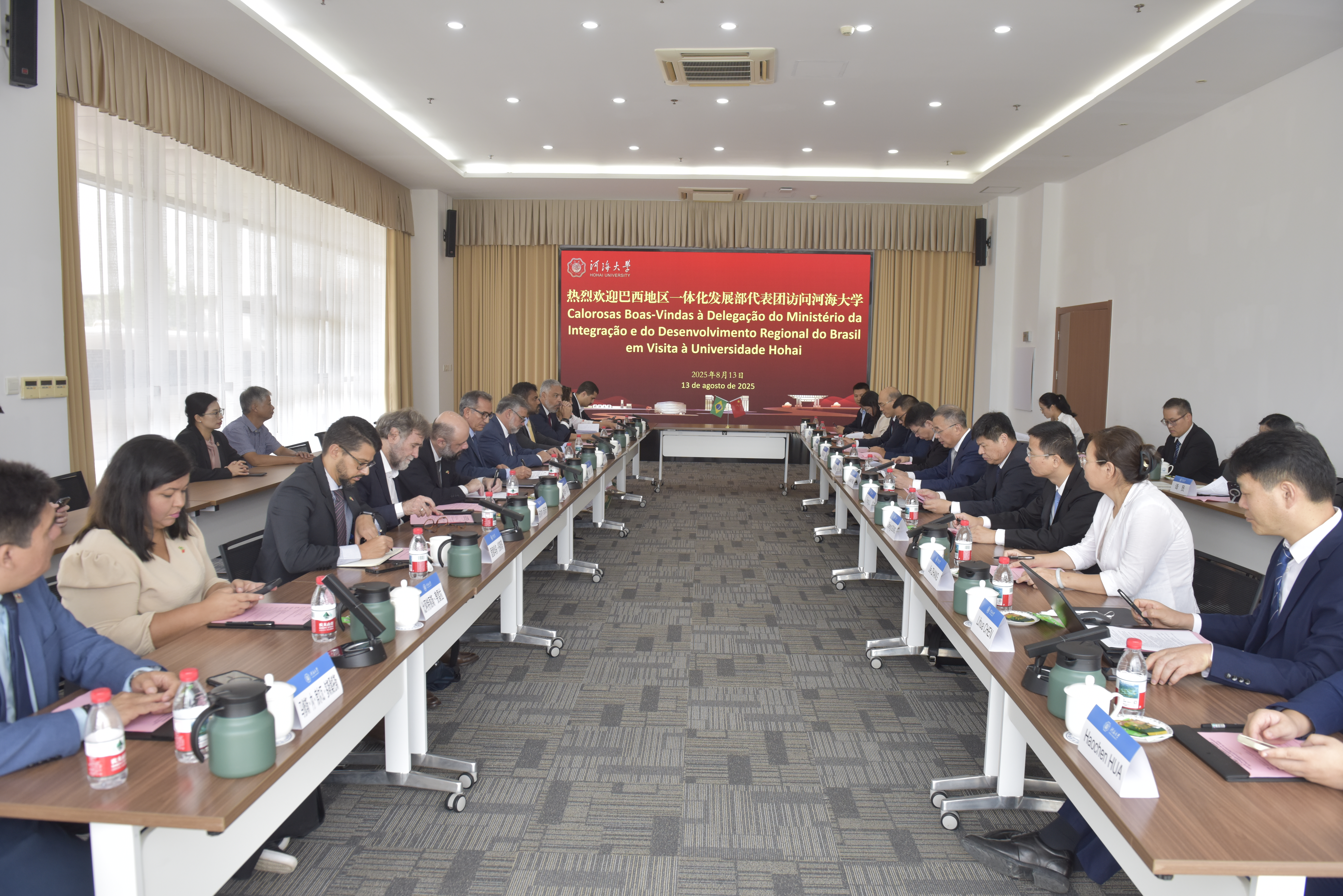 8月13日,巴西地区一体化发展部部长瓦尔德斯·戈埃斯率代表团访问河海大学,就水利工程、土壤修复、灾害防御等领域的合作展开深入交流。校党委书记杨桂山会见代表团。