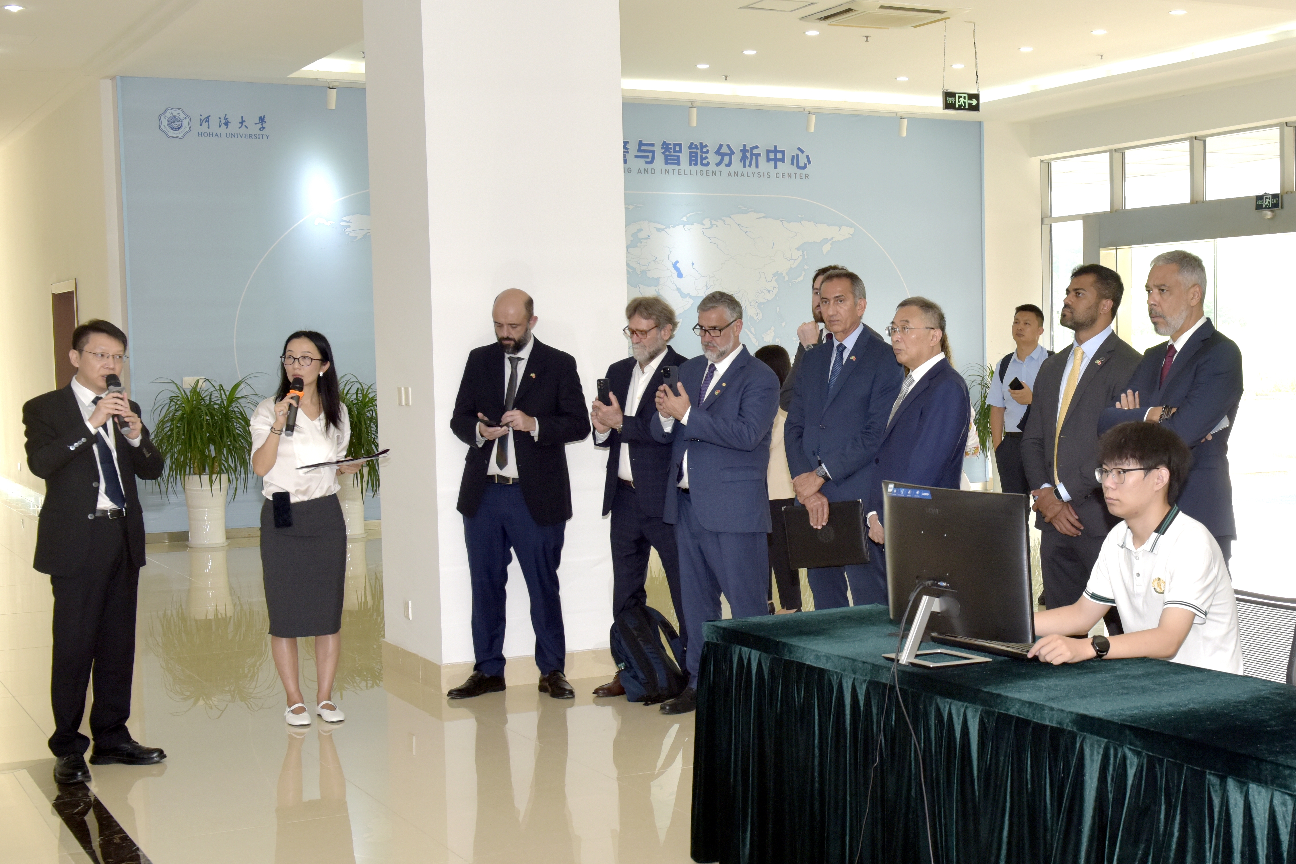 访问期间,代表团参观了河海大学牛首山科技园水工试验研究基地,实地考察了学校在服务国家水网建设、海洋强国战略中的重大科研成果,包括全球水灾害模拟预警系统、智能水利调度技术及重大工程案例。