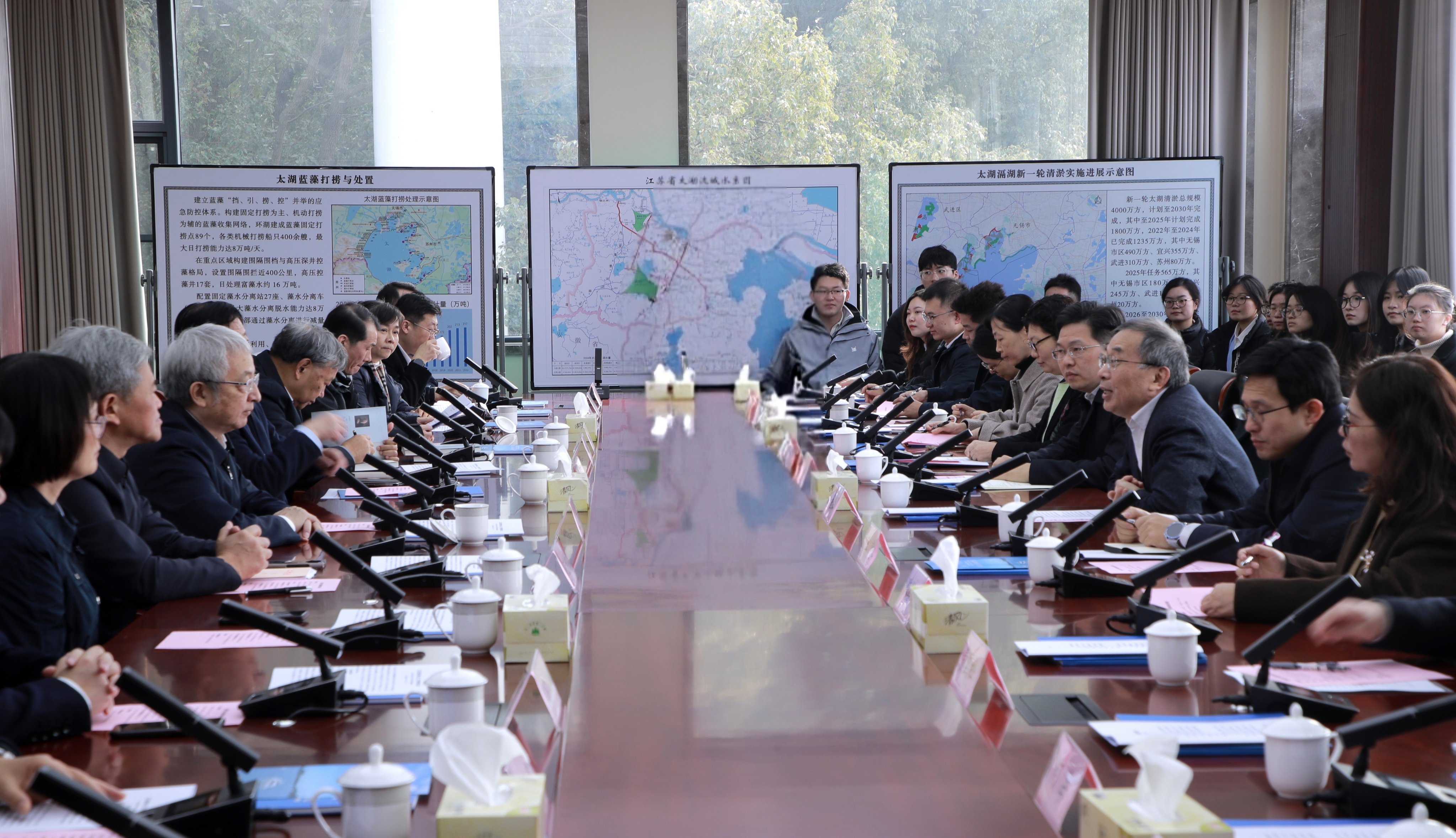 会上,江苏省水利厅汇报太湖治理工作情况,江苏省水文水资源勘测局汇报江苏水文工作发展情况,我校水文水资源学院汇报河海大学水文人才驿站建设运行情况,介绍驿站在教学实训、科研协同等方面的探索以及未来建设规划。